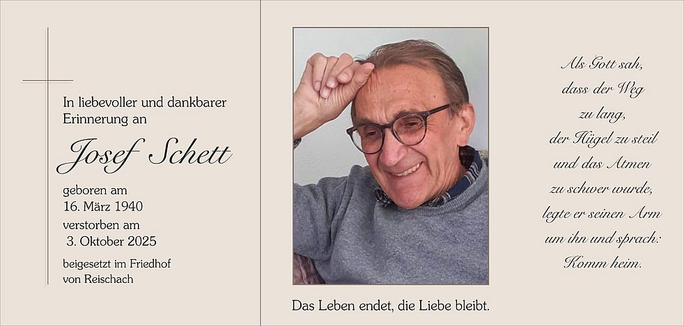 Den Trauergottesdienst feiern wir am Montag, dem 6. Oktober, um 14 Uhr in der Pfarrkirche von Reischach.