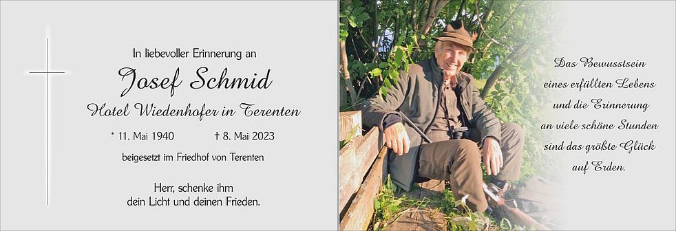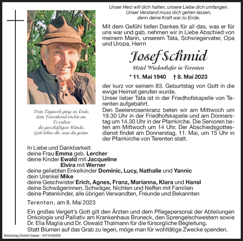Mit dem Gefühl tiefen Dankes für all das, was er für uns war und gab, nehmen wir in Liebe Abschied von meinem Mann, unserem Tata, Schwiegervater, Opa und Uropa, Herrn