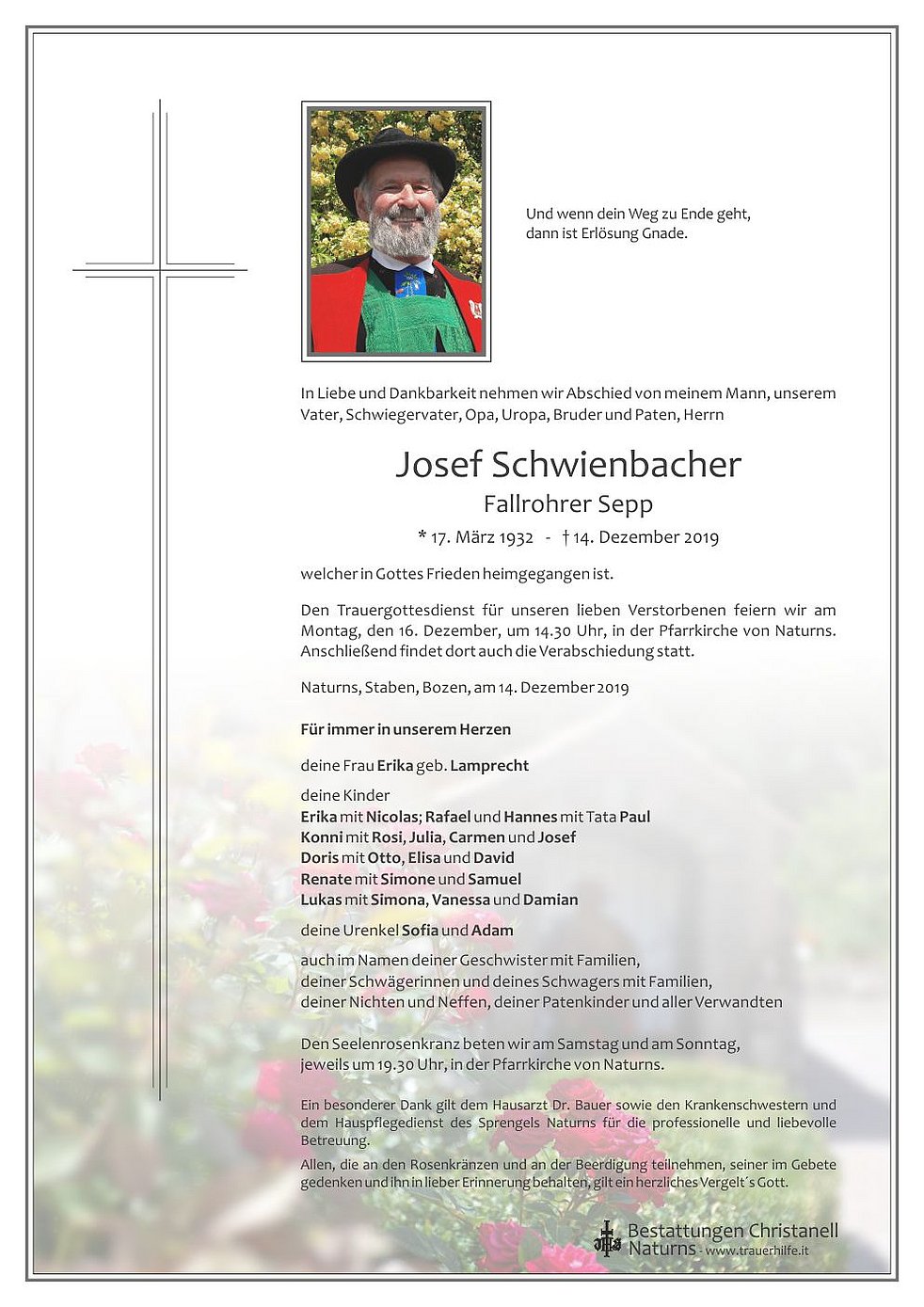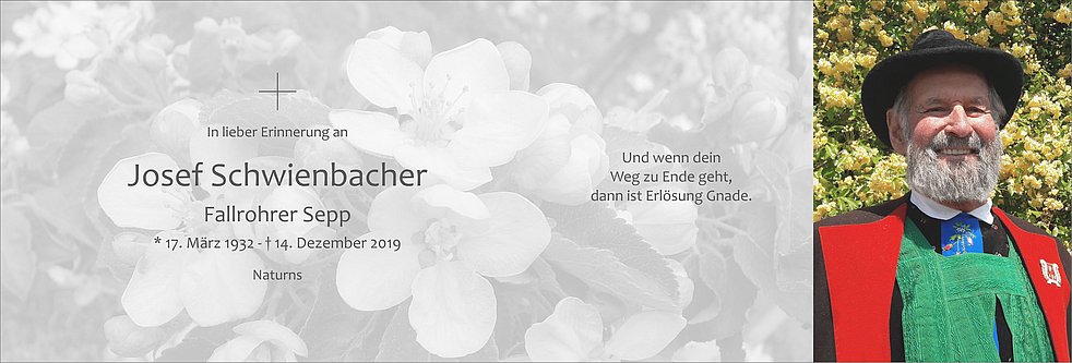 Den Trauergottesdienst für unseren lieben Verstorbenen feiern wir am Montag, den 16. Dezember, um 14.30 Uhr, in der Pfarrkirche von Naturns. Anschließend findet dort auch die Verabschiedung statt.