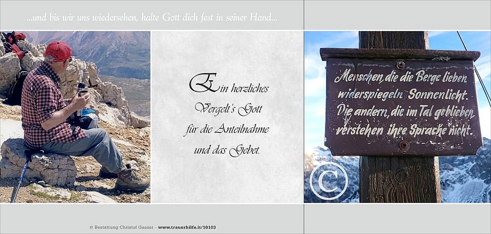 Ein besonderer Dank gilt der Hausärztin Frau Dr. Birgit Lunger und dem gesamten Personal vom Altersheim St. Josef in Taufers für die liebevolle Betreuung und Begleitung.