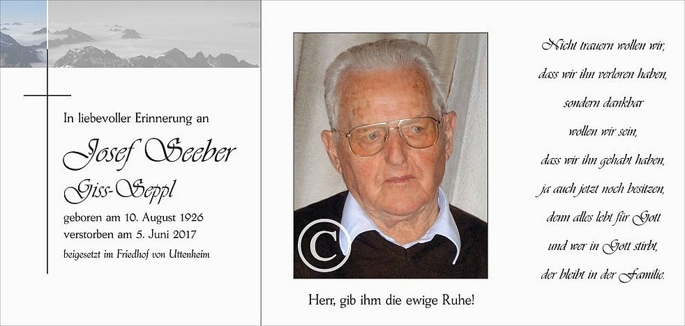 der nach einem arbeitsreichen, unternehmungsfreudigen und christlich geprägten Leben, gestärkt durch die hl. Sakramente, friedlich im Herrn entschlafen ist.
