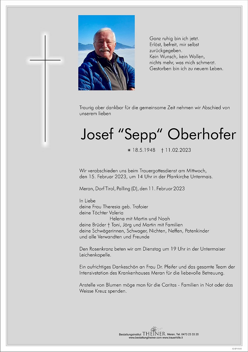 Wir verabschieden uns beim Trauergottesdienst am Mittwoch, den 15. Februar 2023, um 14 Uhr in der Pfarrkirche Untermais.