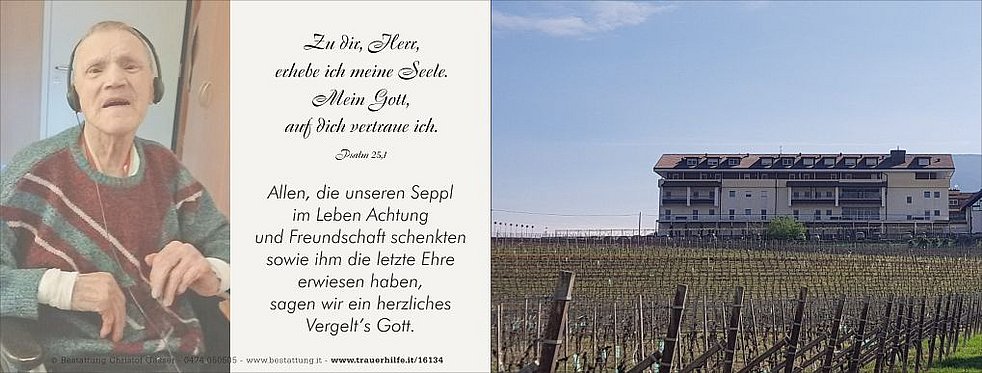 Ein besonderer Dank gilt den Ordensschwestern und dem gesamten Pflegepersonal vom Jesuheim in Girlan für die jahrelange liebevolle Betreuung und Begleitung.