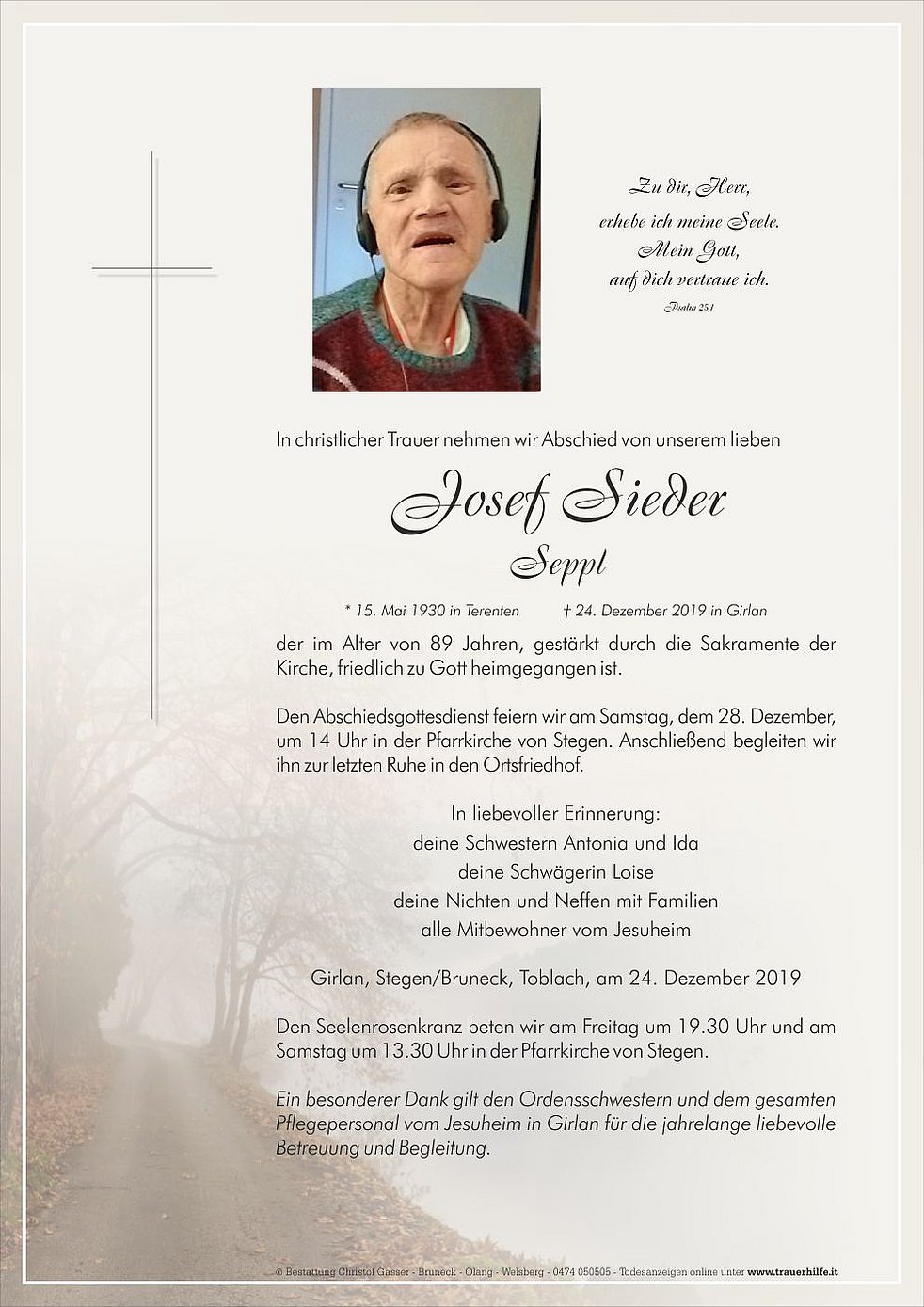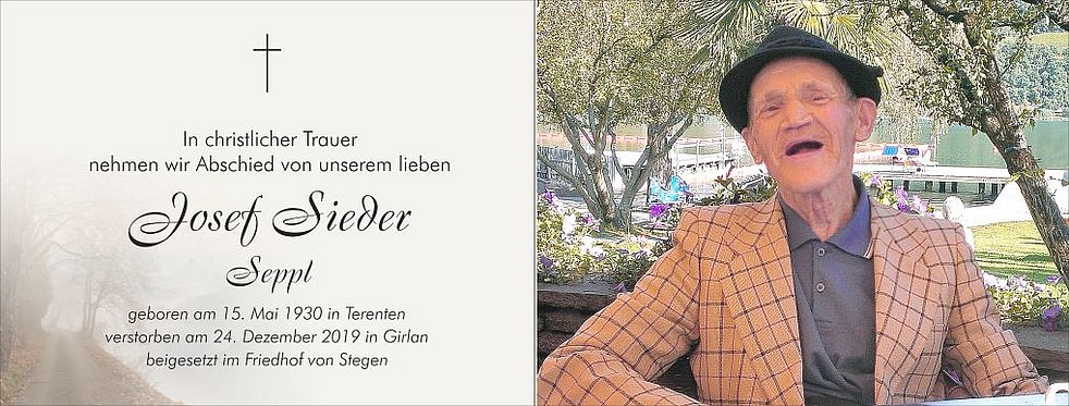 * 15. Mai 1930 in Terenten † 24. Dezember 2019 in Girlan