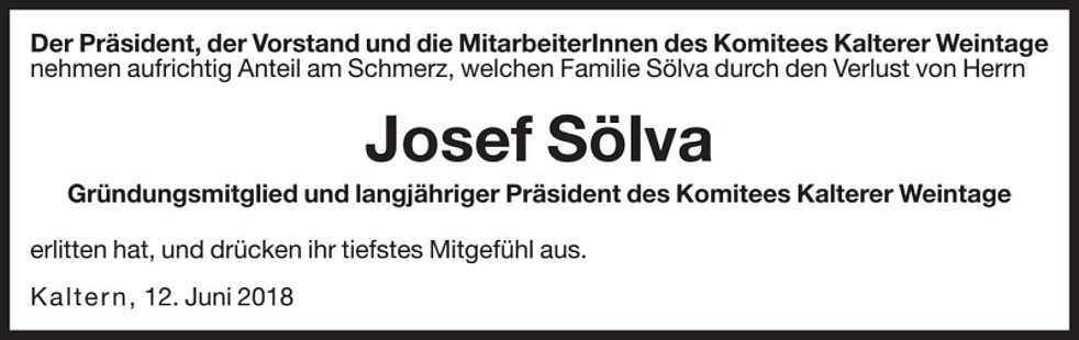 Kaltern, am 10. Juni 2018