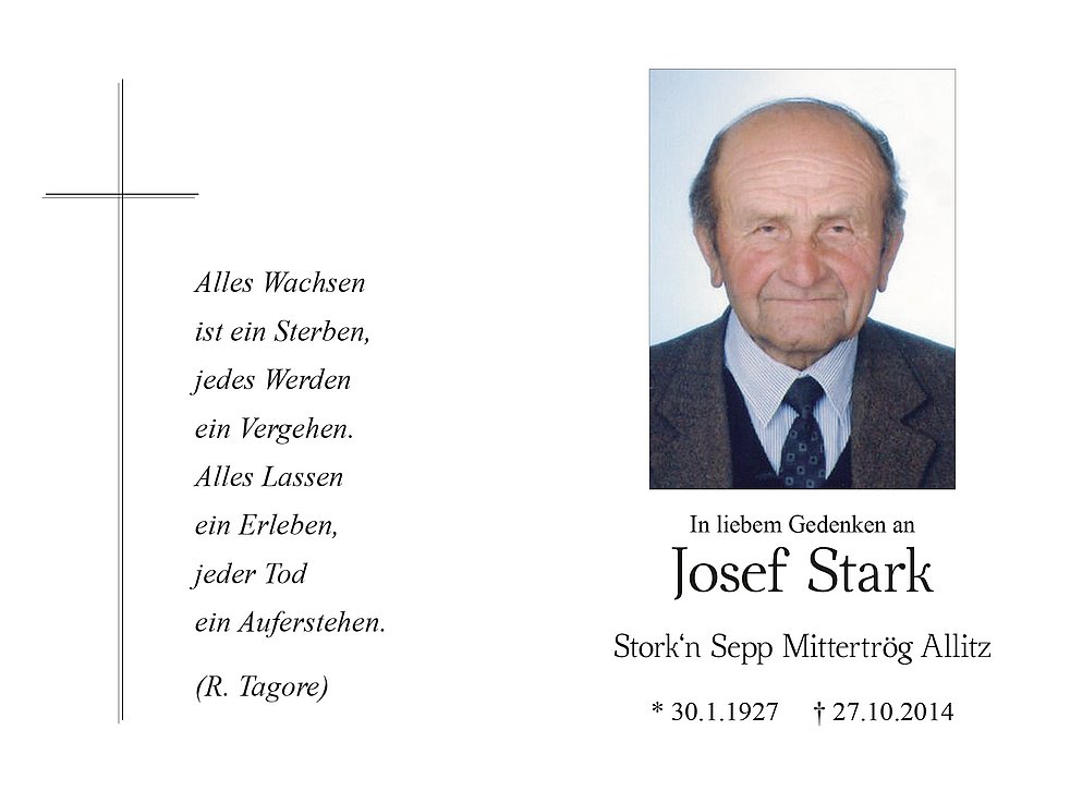 Nach einem arbeitsreichen und pflichterfüllten Leben hat Gott, der Herr, meinen lieben Mann, unseren guten Vater, Schwiegervater, Opa, Bruder, Schwager, Onkel und Paten, Herrn