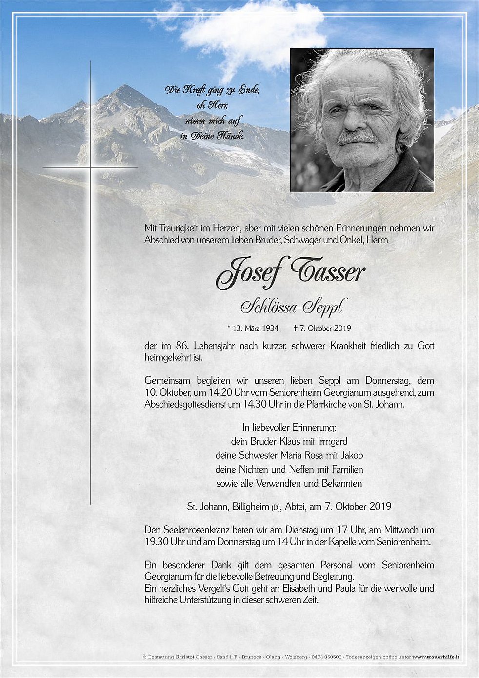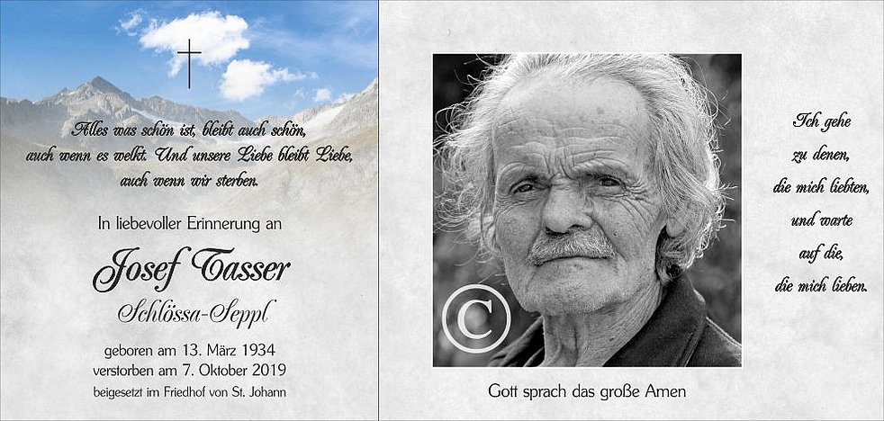Gemeinsam begleiten wir unseren lieben Seppl am Donnerstag, dem 10. Oktober, um 14.20 Uhr vom Seniorenheim Georgianum ausgehend, zum Abschiedsgottesdienst um 14.30 Uhr in die Pfarrkirche von St. Johann.