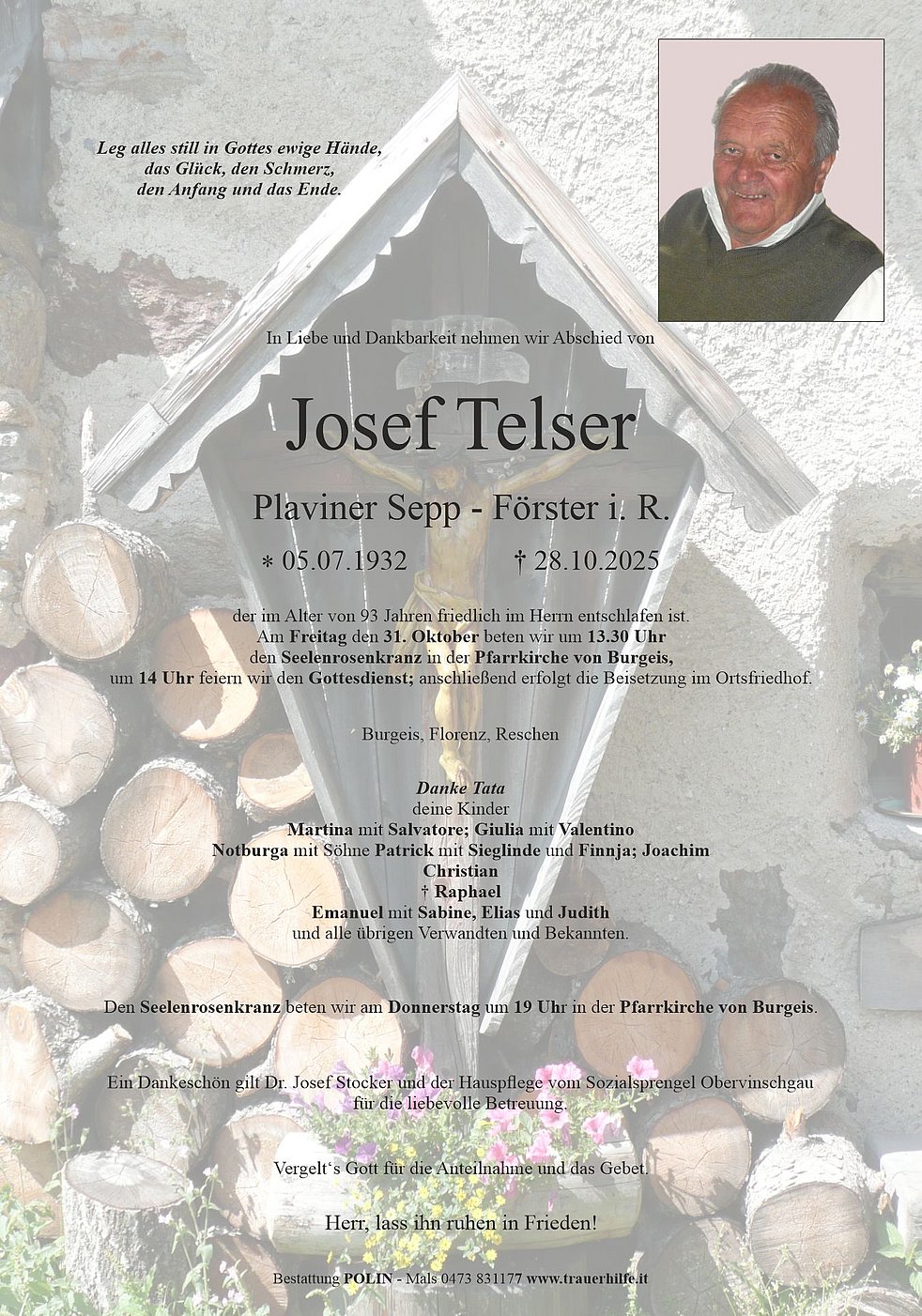 um 14 Uhr feiern wir den Gottesdienst; anschließend erfolgt die Beisetzung im Ortsfriedhof.