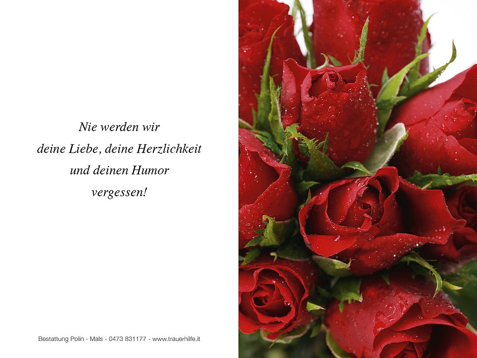 sowie im Namen aller übrigen Verwandten und Bekannten.