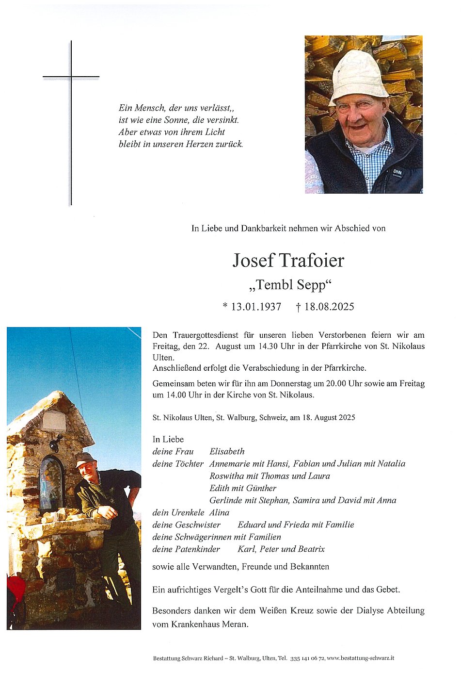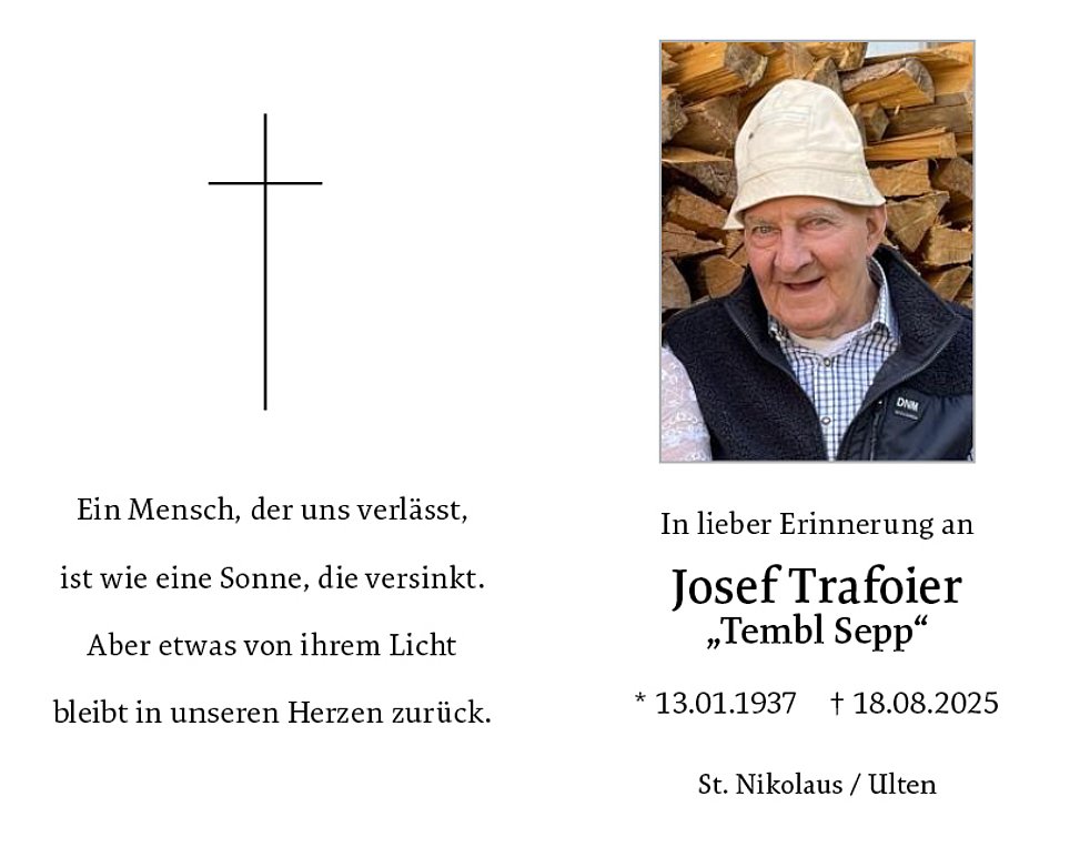 Trauerfeier: 22.08. - 14:30 Uhr St. Nikolaus Ulten