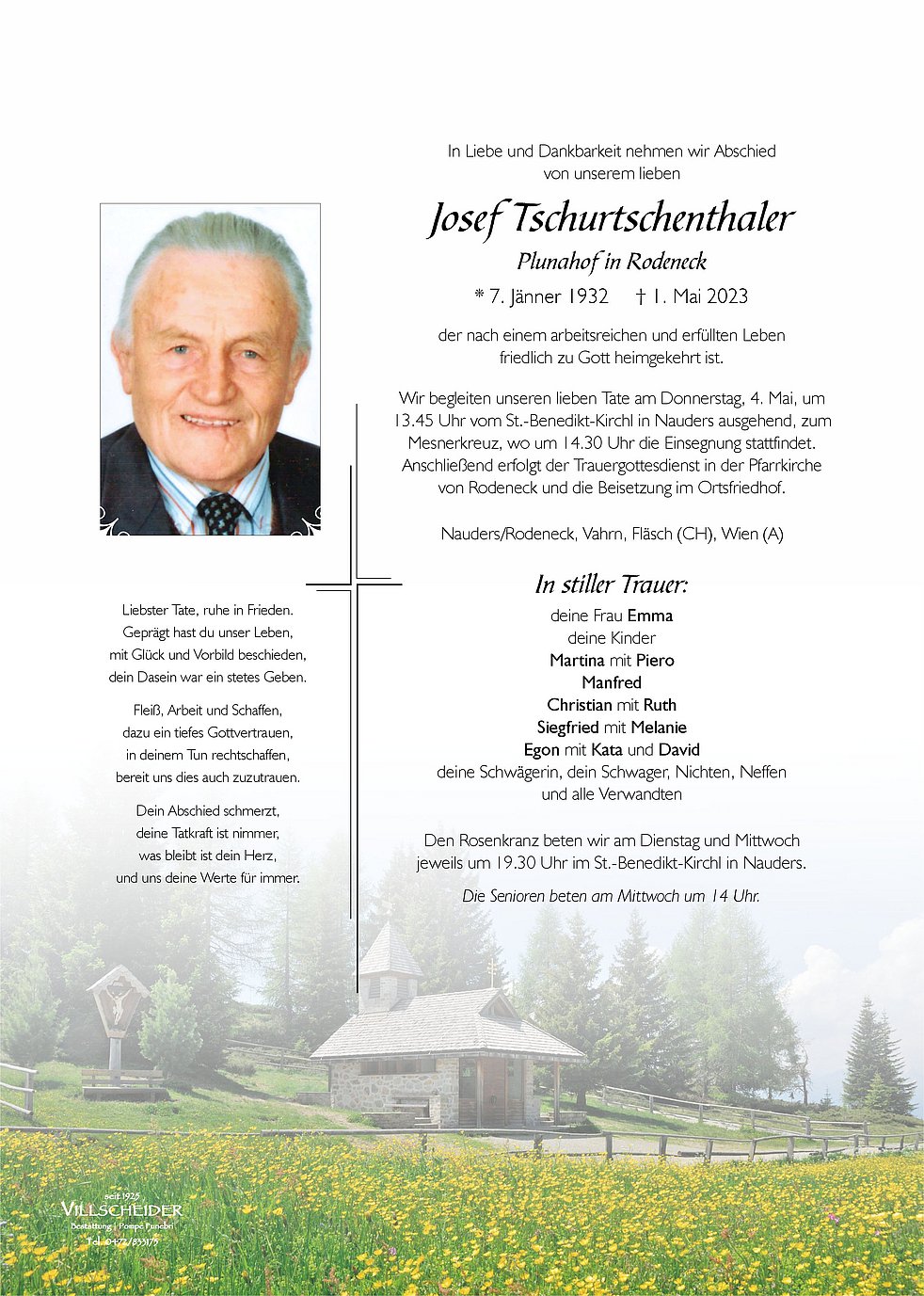 Liebe Familie Tschurtschenthaler, wir möchten Ihnen allen unser aufrichtiges Mitgefühl und unsere Anteilnahme ausdrücken. Herzliches Beileid Brigitte u Peter