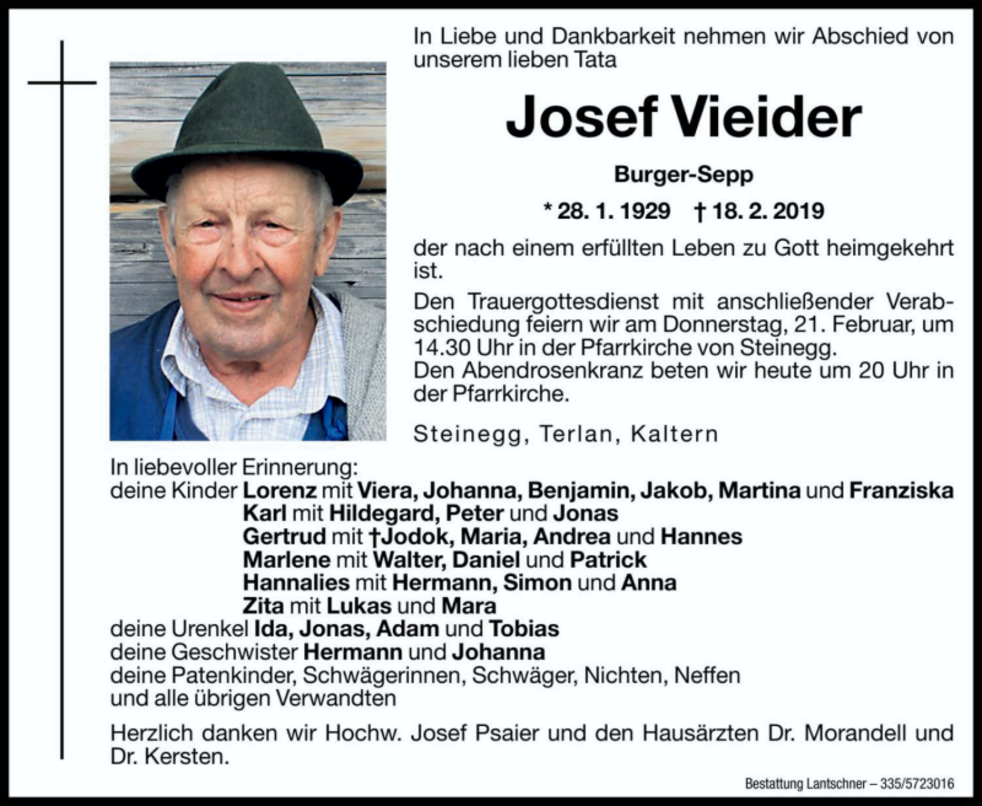 am Donnerstag, 21. Februar, um 14.30 Uhr in der Pfarrkirche von Steinegg.