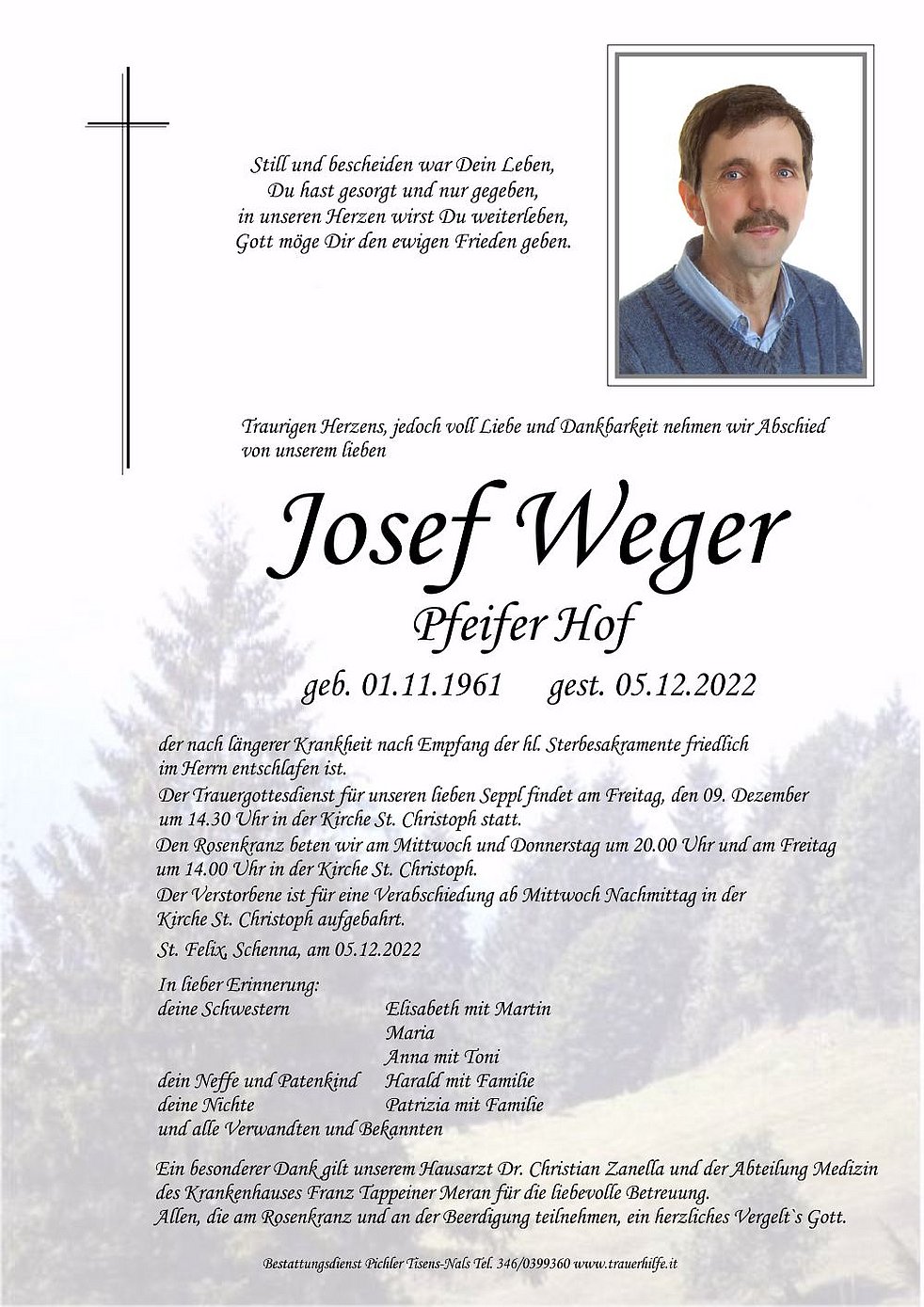 Der Trauergottesdienst für unseren lieben Seppl findet am Freitag, den 09. Dezember