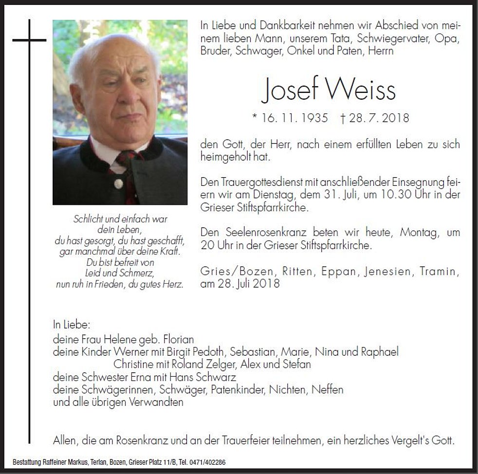 Den Trauergottesdienst mit anschlieβender Einsegnung feiern wir am Dienstag, dem 31. Juli, um 10.30 Uhr in der Grieser Stiftspfarrkirche.