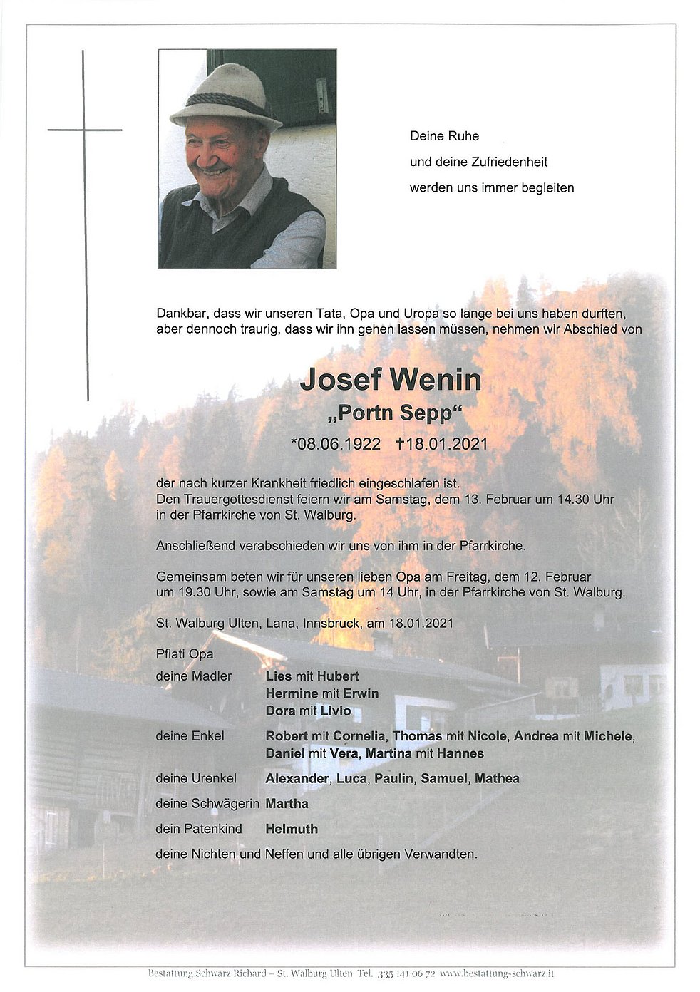 Dankbar, dass wir unseren Tata, Opa und Uropa so lange bei uns haben durften, aber dennoch traurig, dass wir ihn gehen lassen müssen, nehmen wir Abschied von
