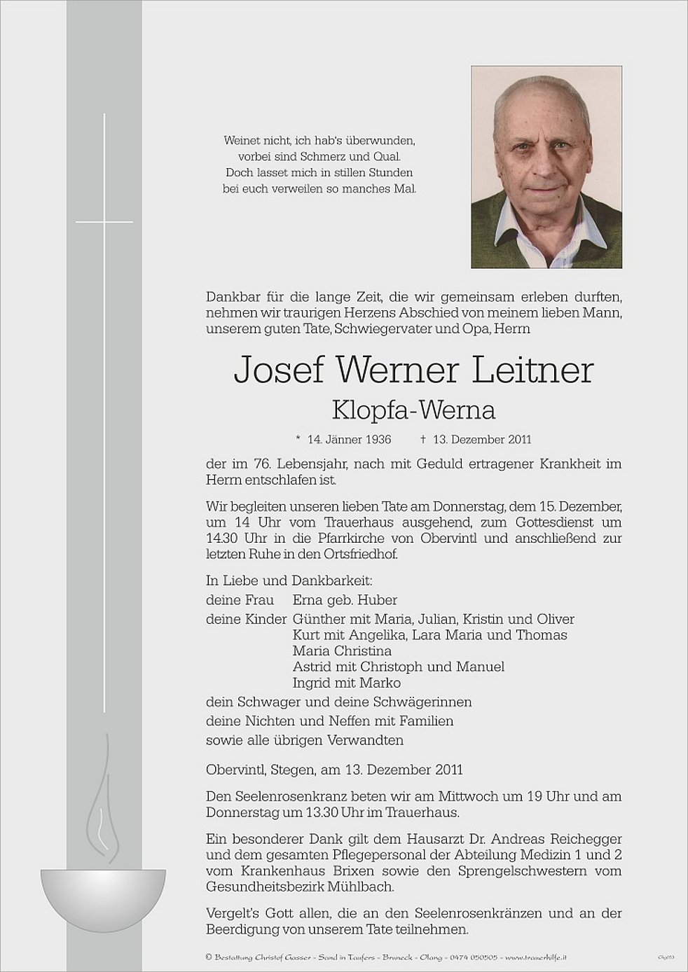14.30 Uhr in die Pfarrkirche von Obervintl und anschließend zur letzten Ruhe in den Ortsfriedhof.