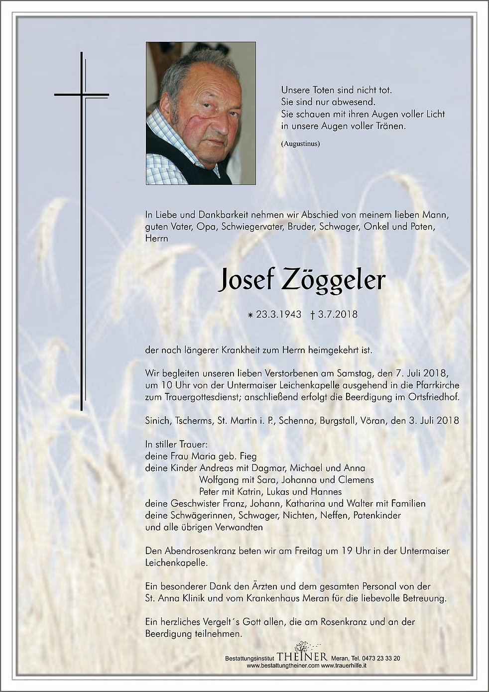 Wir begleiten unseren lieben Verstorbenen am Samstag, den 7. Juli 2018, um 10 Uhr von der Untermaiser Leichenkapelle ausgehend in die Pfarrkirche zum Trauergottesdienst; anschließend erfolgt die Beerdigung im Ortsfriedhof.
