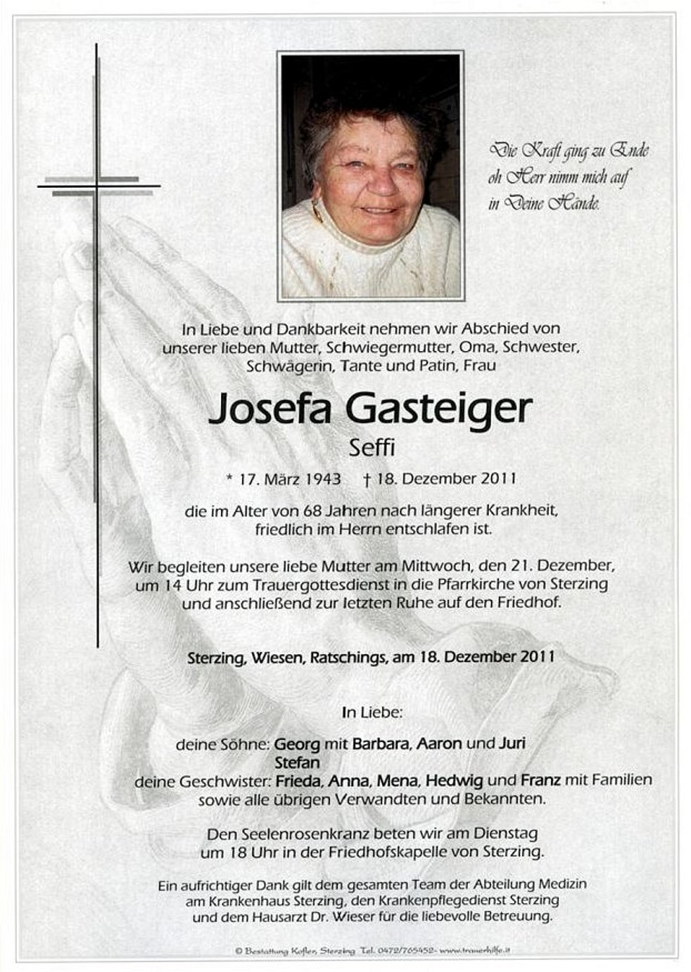 um 14 Uhr zum Trauergottesdienst in die Pfarrkirche von Sterzing