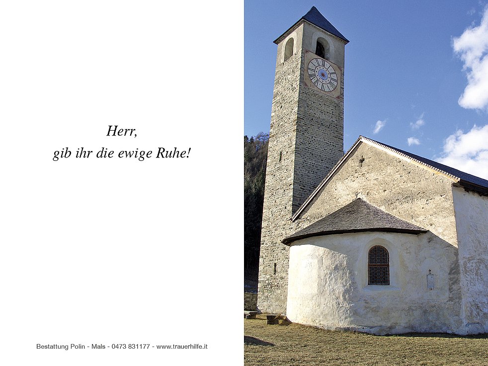und am Dienstag um 13.30 Uhr in der Pfarrkirche von Prad.