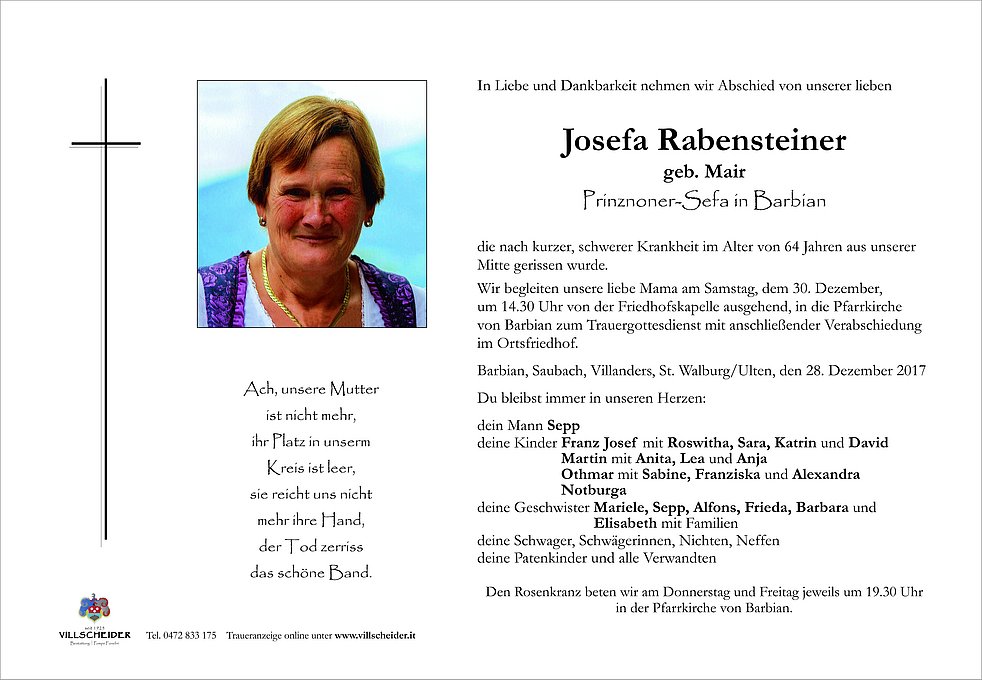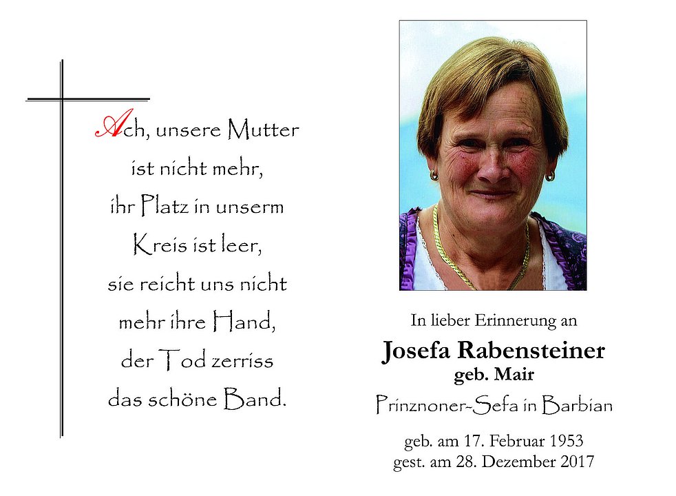 Wir begleiten unsere liebe Mama am Samstag, dem 30. Dezember,