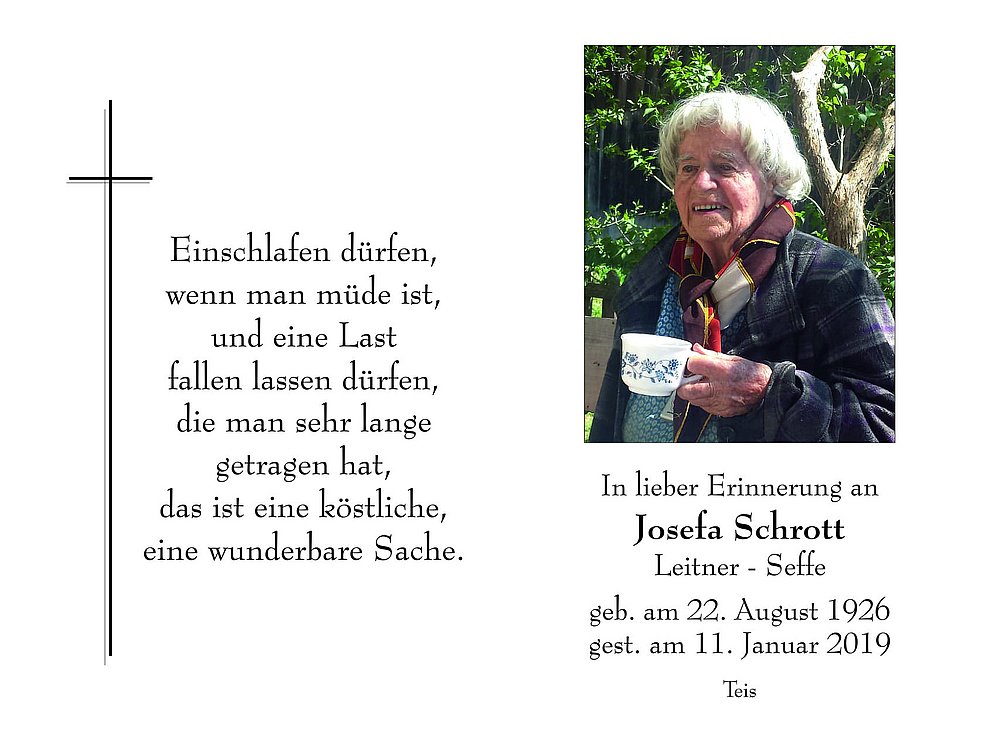 Begräbnisgottesdienst: 14.01. - 14:30 Uhr Teis