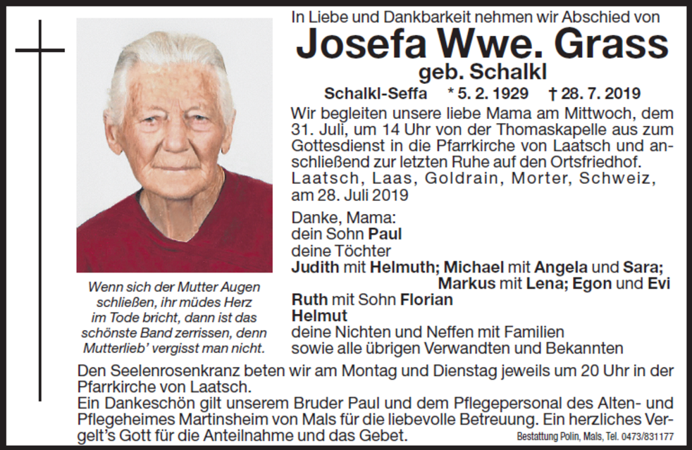 des Alten- und Pflegeheimes Martinsheim von Mals für die liebevolle Betreuung.