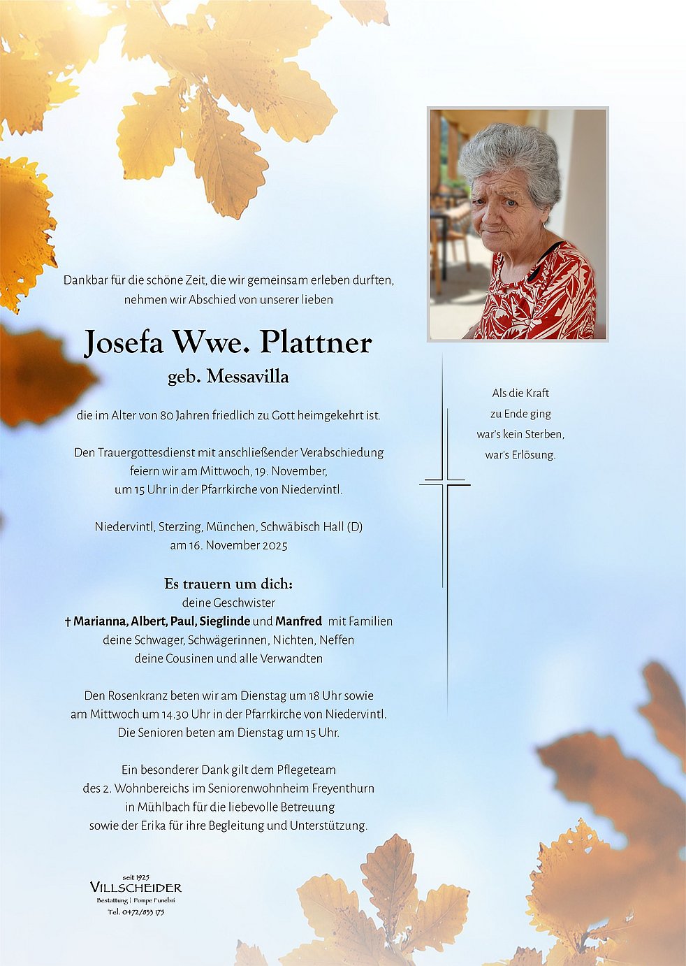 Trauerfeier: 19.11. - 15:00 Uhr Niedervintl