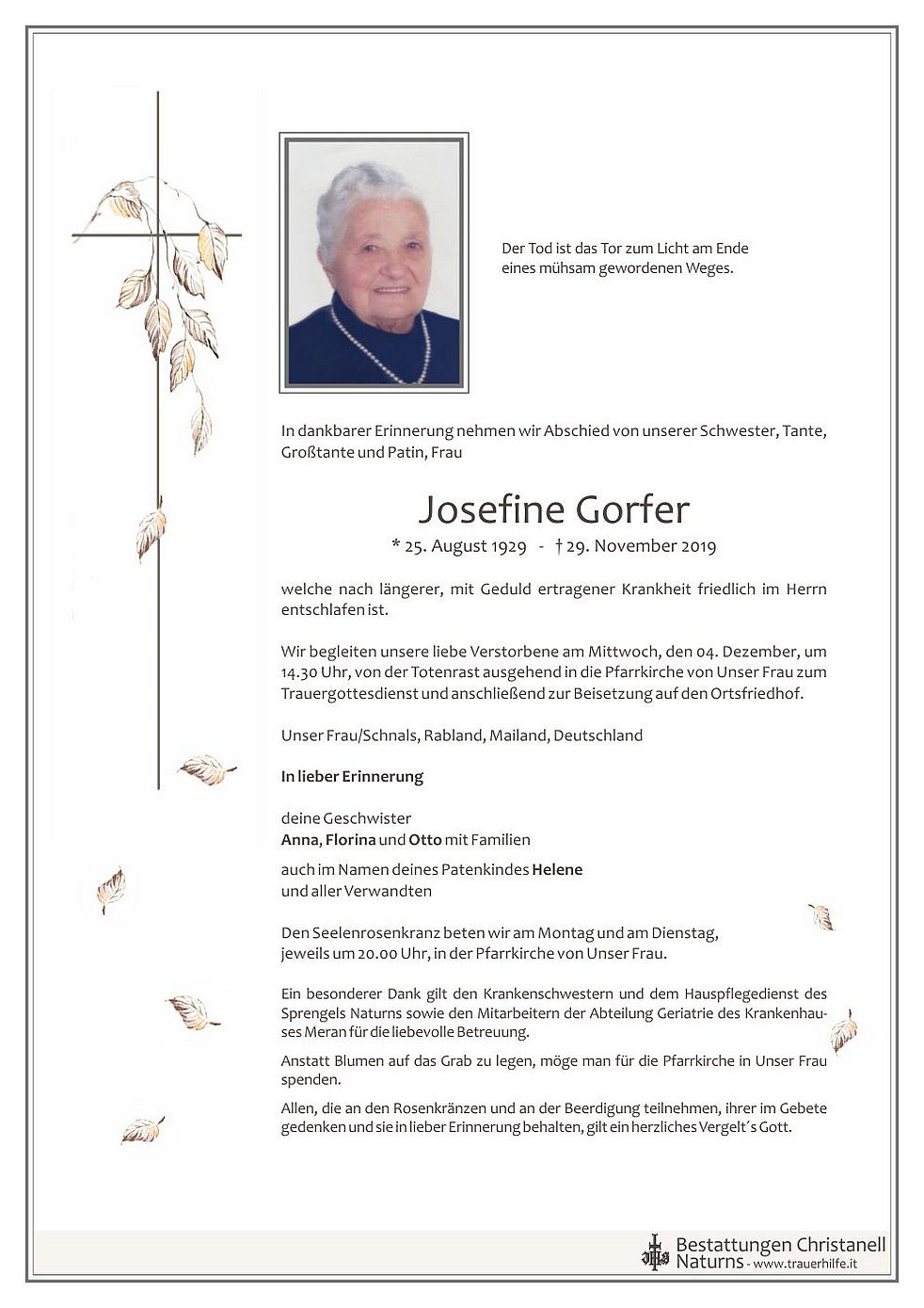 Bestattungen Christanell - Naturns