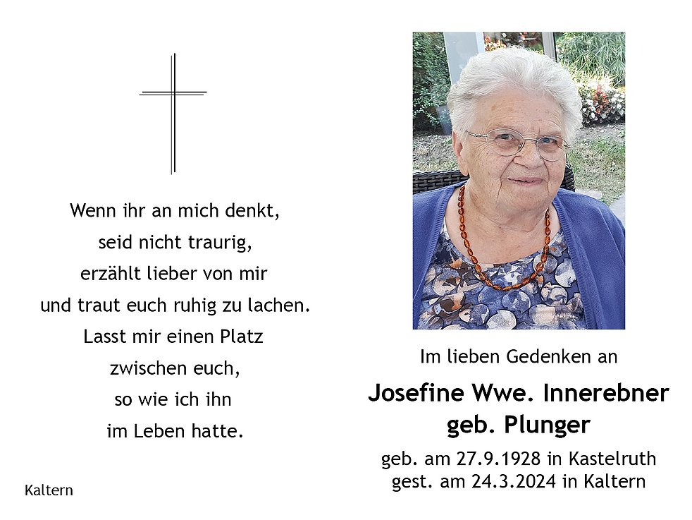 Josefine Wwe. Innerebner geb. Plunger
