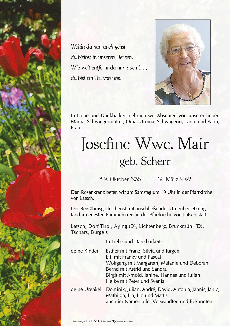 Der Begräbnisgottesdienst mit anschließender Urnenbeisetzung fand im engsten Familienkreis in der Pfarrkirche von Latsch statt.