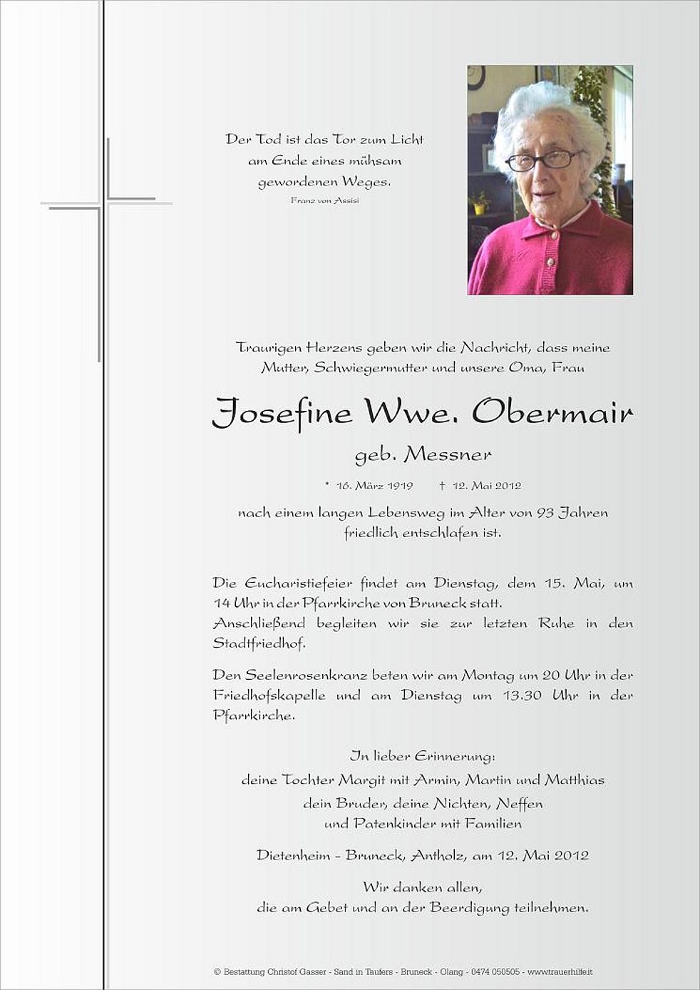 Traurigen Herzens geben wir die Nachricht, dass meine Mutter, Schwiegermutter und unsere Oma, Frau