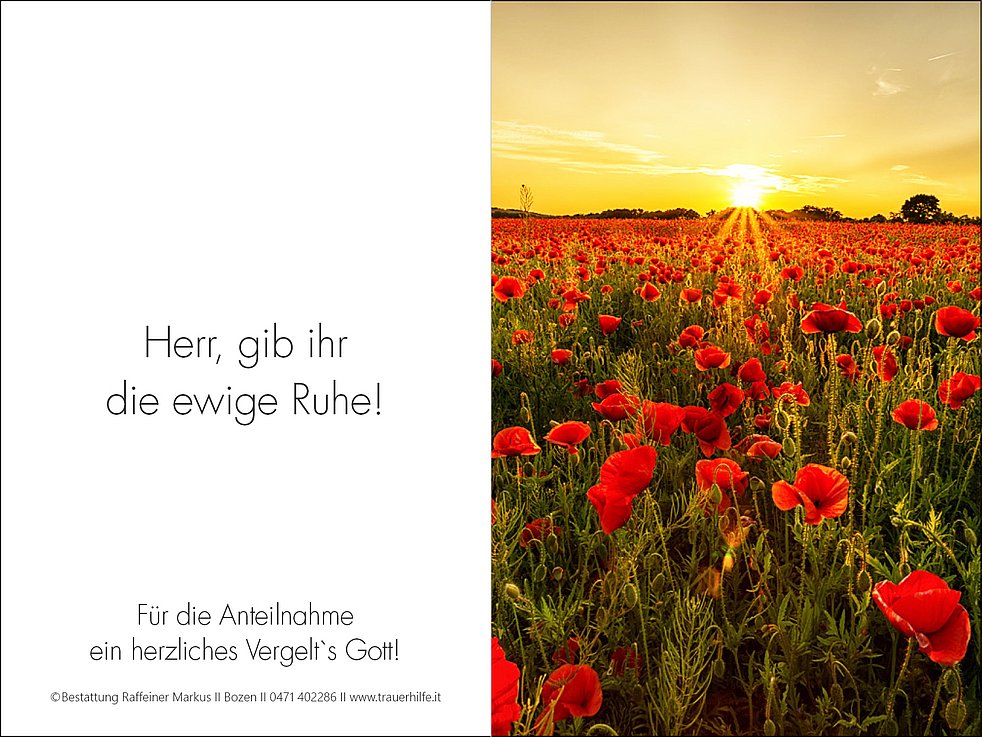 Anschließend um 10.30 Uhr begleiten wir unsere liebe Verstorbene zur letzten Ruhe auf den städtischen Friedhof von Bozen Oberau, ausgehend vom Haupteingang.