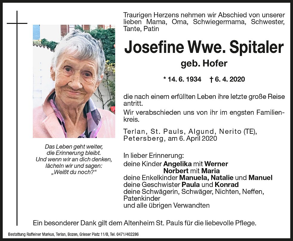 Ein besonderer Dank gilt dem Altenheim St. Pauls für die liebevolle Pflege.