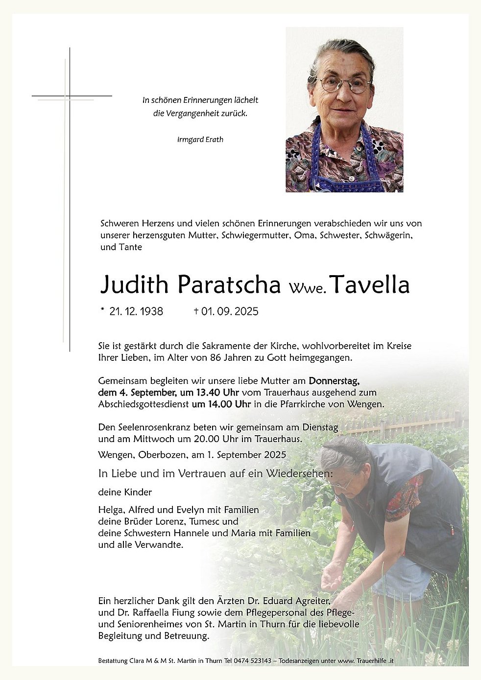 Judith, na lüm te acompagni sön paraisc! Sintides condolianzes!