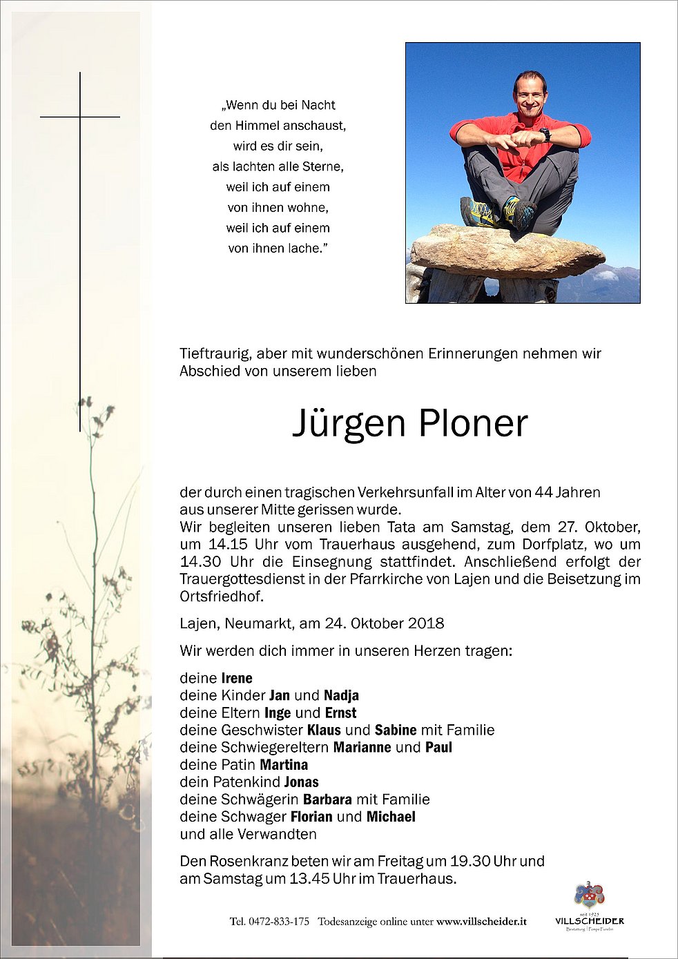 Erschütternd und entzetzt haben wir vom Tod eures lieben Jürgen erfahren.In tiefer Trauer nehmen wir Anteil an eurem Schmerz und