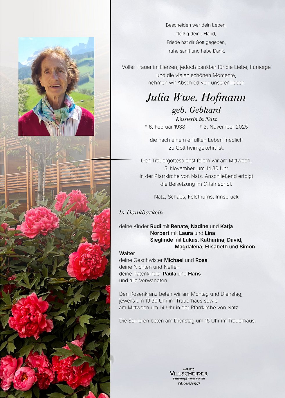 Begräbnisgottesdienst: 05.11. - 14:30 Uhr Natz