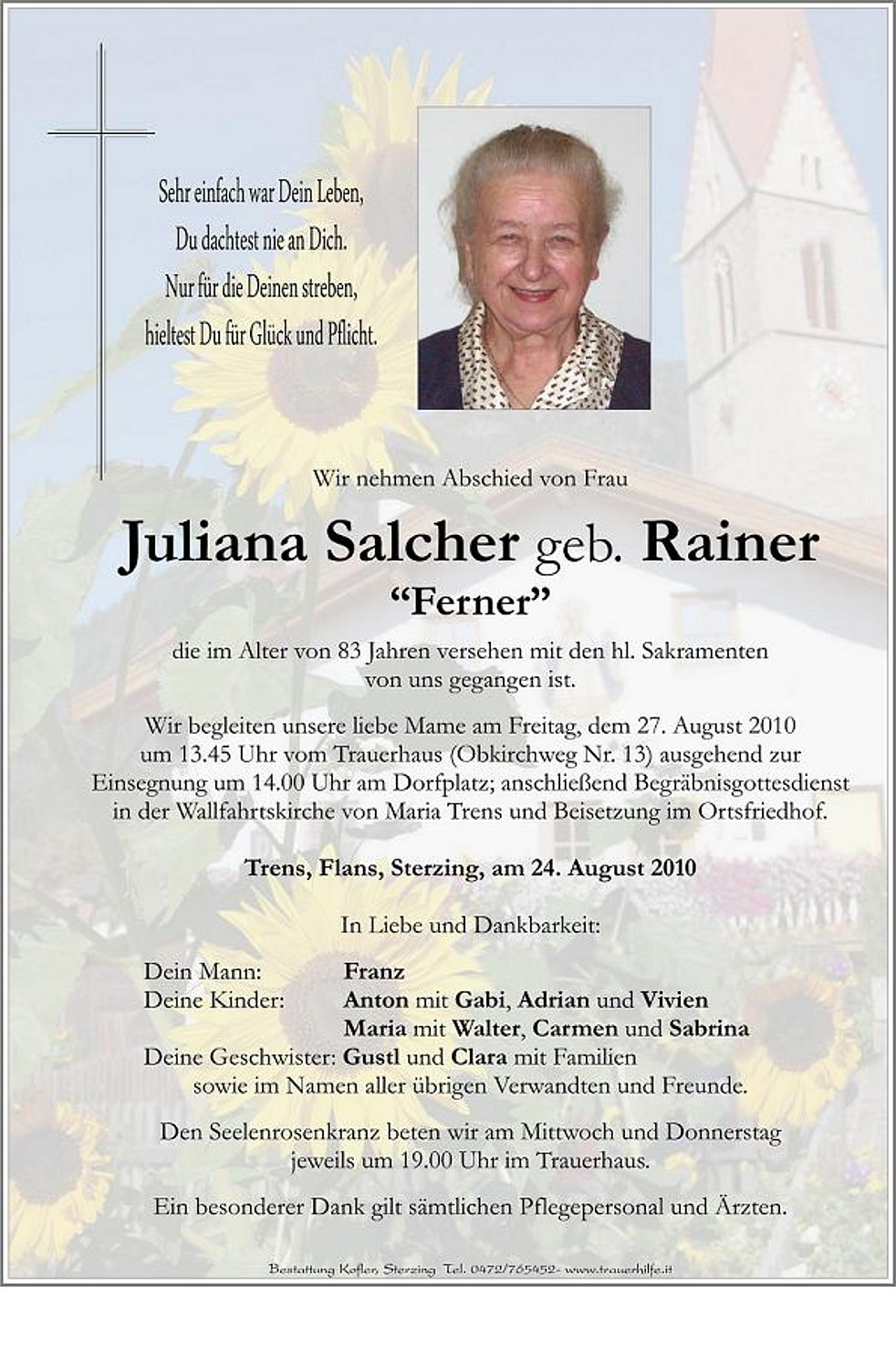 die im Alter von 83 Jahren versehen mit den hl. Sakramenten