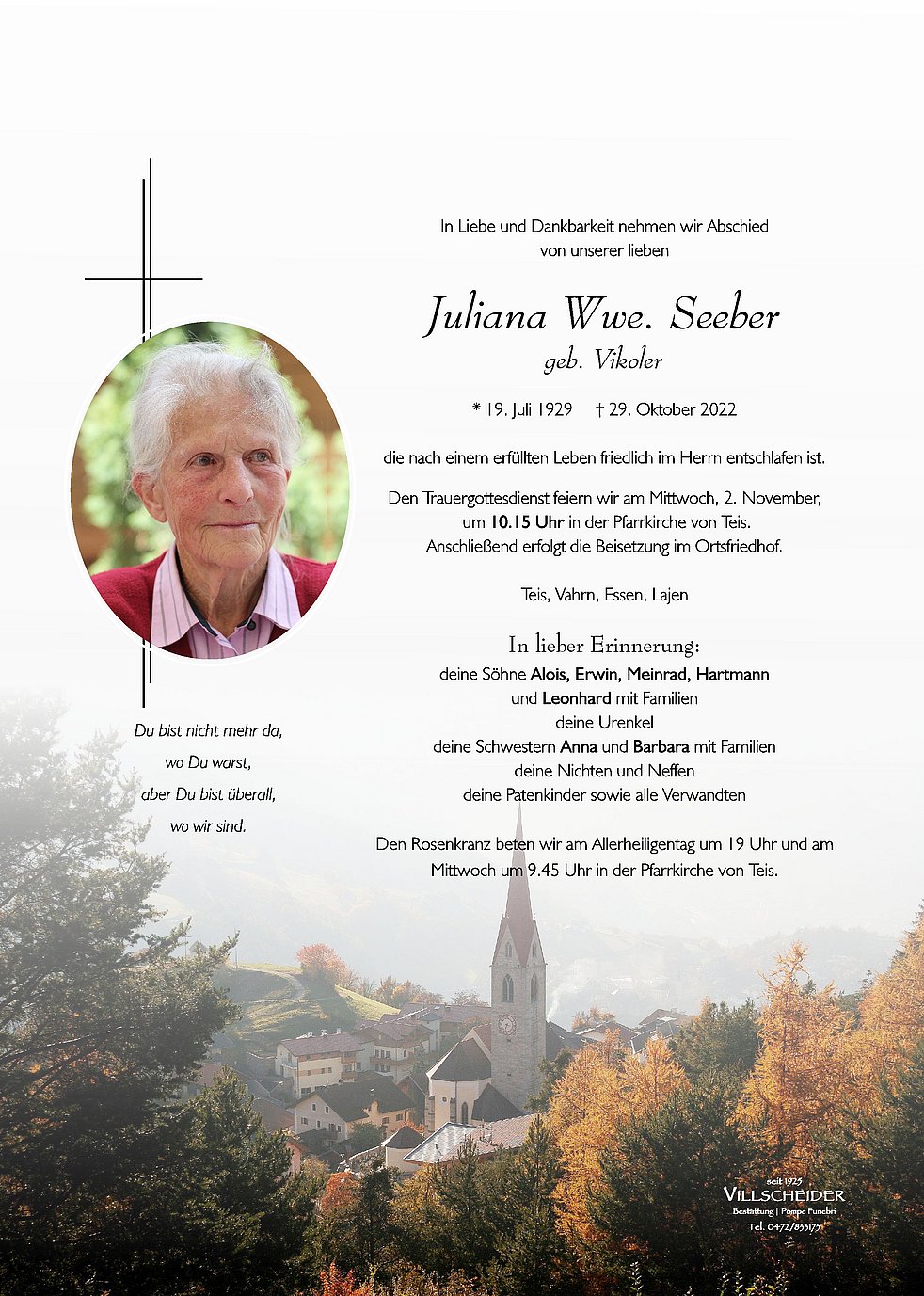 Begräbnisgottesdienst: 02.11. - 10:15 Uhr Teis