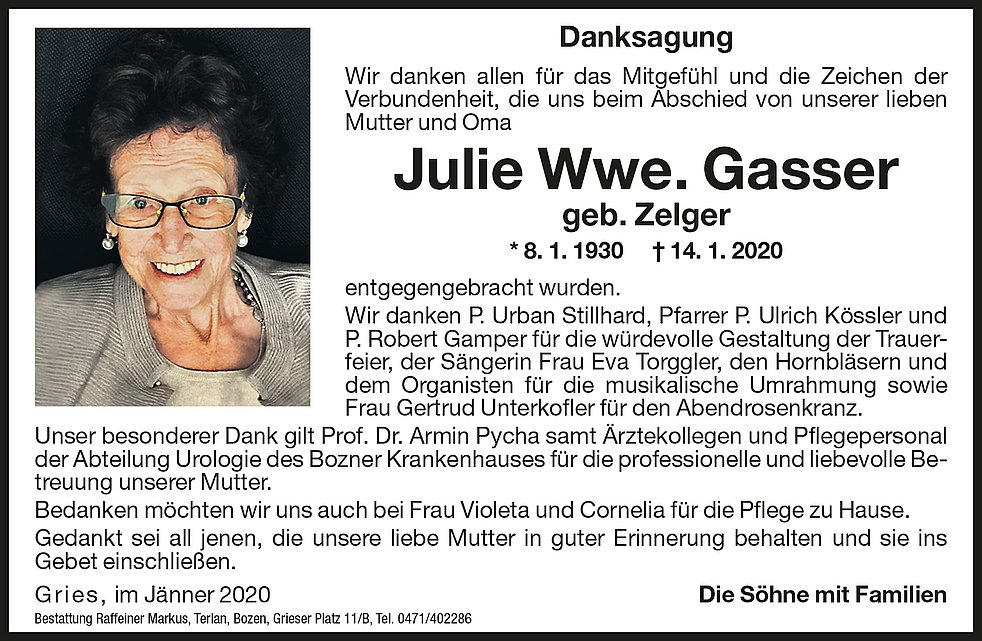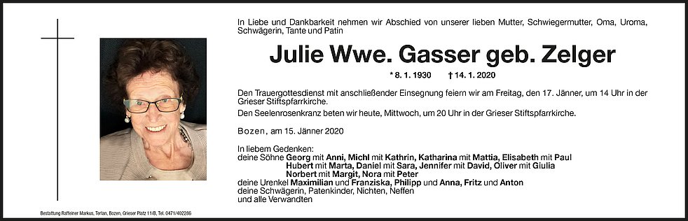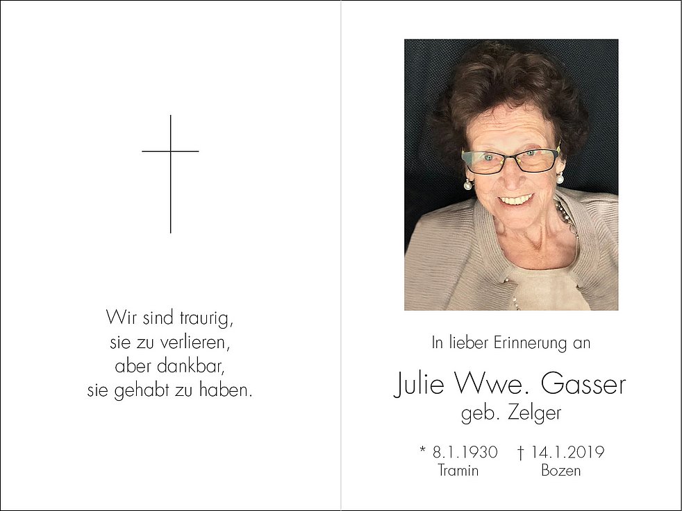 Julie Wwe. Gasser geb. Zelger