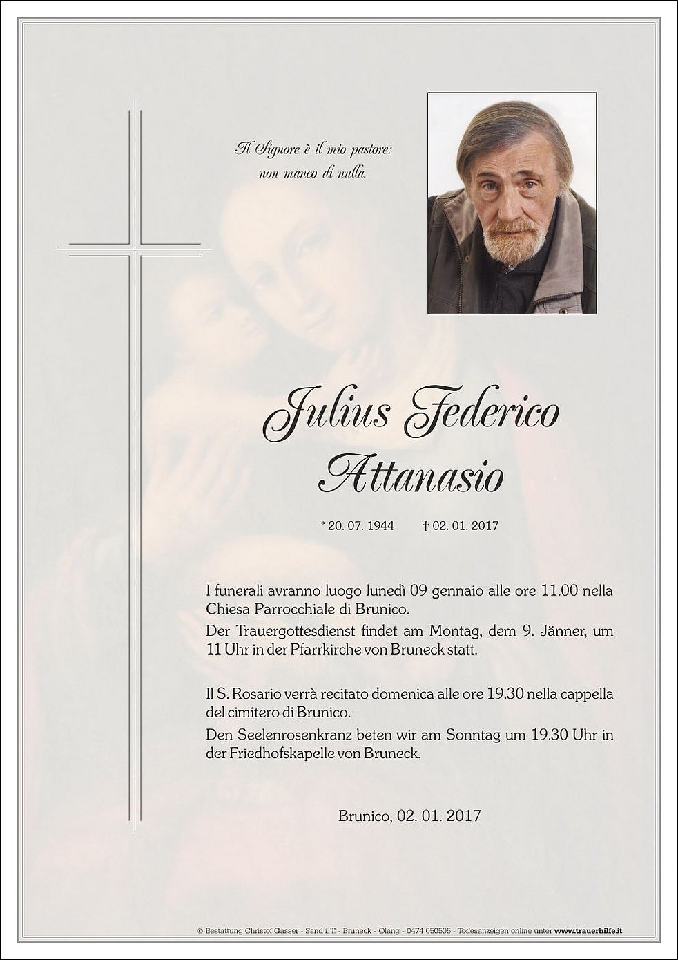 Der Trauergottesdienst findet am Montag, dem 9. Jänner, um 11 Uhr in der Pfarrkirche von Bruneck statt.