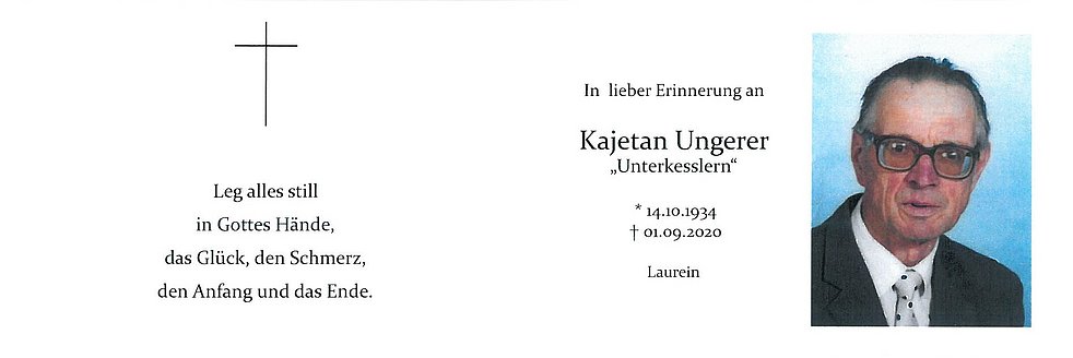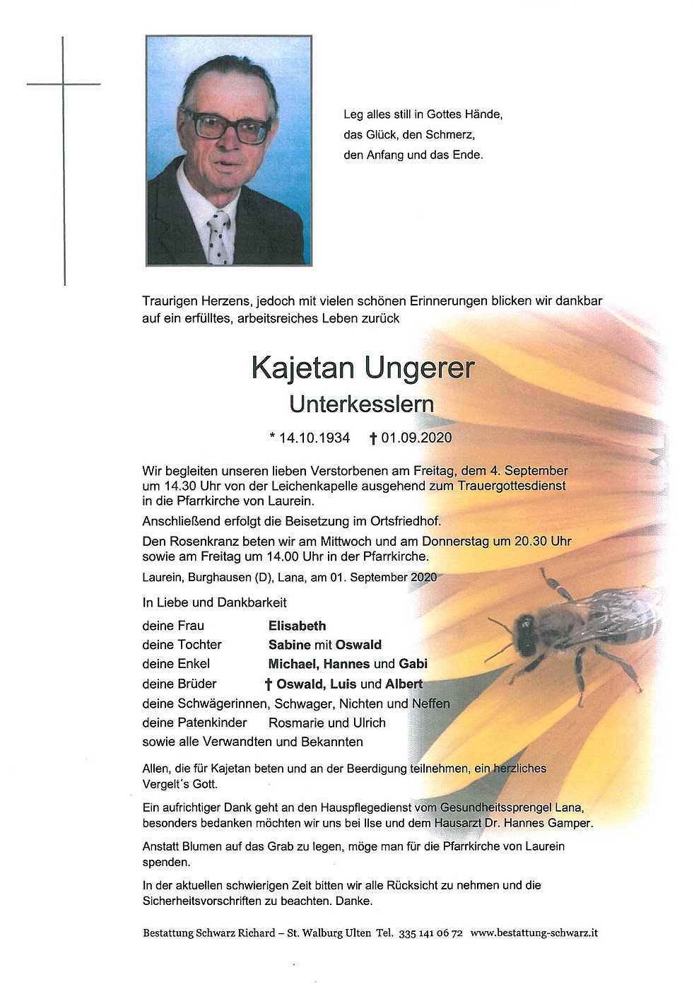 Begräbnisgottesdienst: 04.09. - 14:30 Uhr Pfarrkirche Laurein