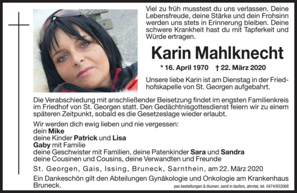 Ich habe heute zufällig von dem Tod eurer Karins erfahren, und war bestürzt. Ich habe Karin vor (mittlerweile) vielen Jahren arbeitsbedingt kennen und schätzen gelernt. Sie war eine ausserordentlich sympatische und kompetente Arbeitskollegin, und es tut mir unendlich leid sie nicht mehr hier zu wissen. Ich werde sie immer in guter Erinnerung behalten.