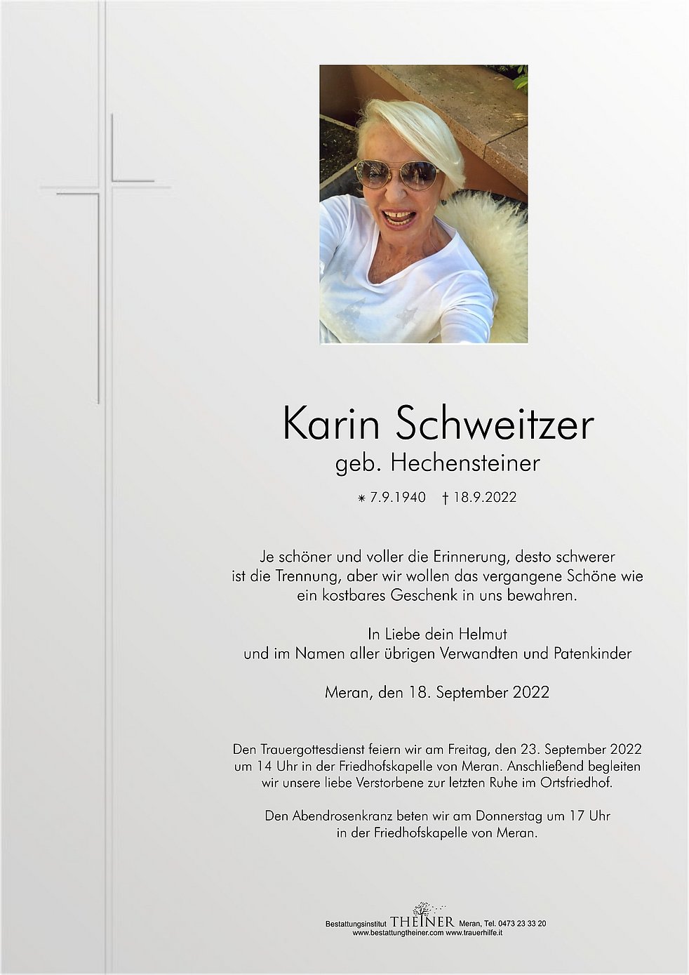 Den Trauergottesdienst feiern wir am Freitag, den 23. September 2022 um 14 Uhr in der Friedhofskapelle von Meran. Anschließend begleiten