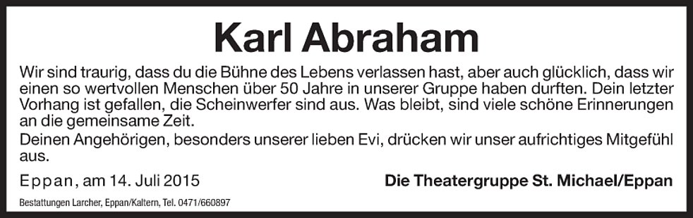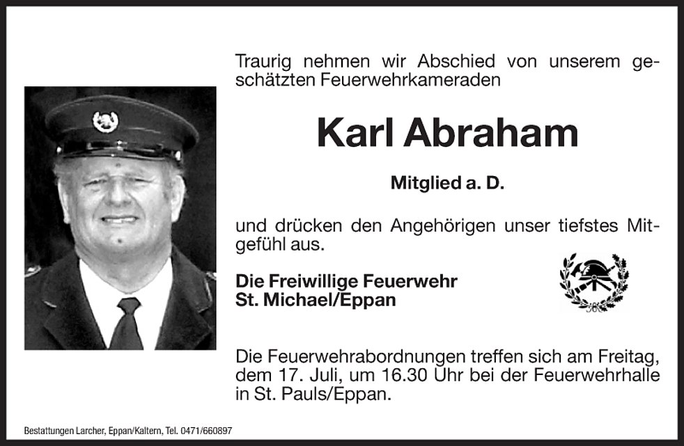 Den Trauergottesdienst feiern wir am Freitag, dem 17. Juli, um 17 Uhr in der Pfarrkirche von St. Pauls. Anschließend begleiten wir unseren lieben Verstorbenen auf den Ortsfriedhof.