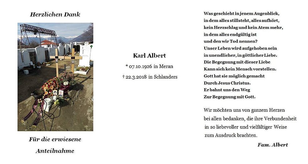 Allen, die an den Seelenrosenkränzen und an der Beerdigung teilnehmen, seiner im Gebete gedenken und ihn in lieber Erinnerung behalten, sei herzlich gedankt.