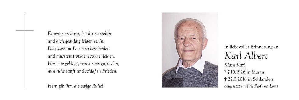 * 7.10.1926 in Meran † 22.3.2018 in Schlanders