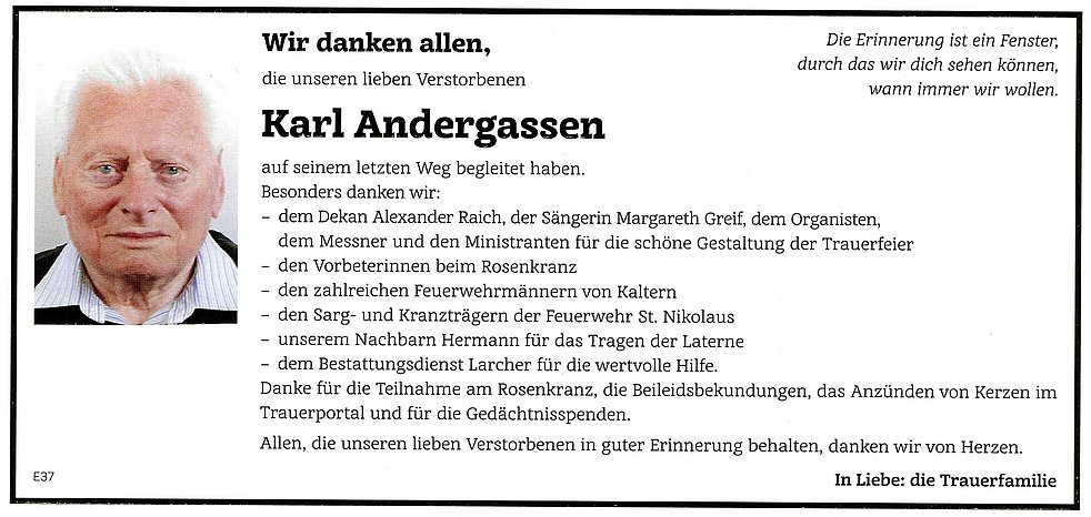 Allen, die am Rosenkranz und an der Beerdigung teilnehmen im Voraus ein herzliches Vergelt’s Gott.