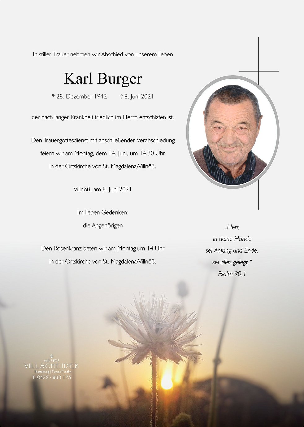 Trauerfeier: 14.06. - 14:30 Uhr St. Magdalena/Villnöß