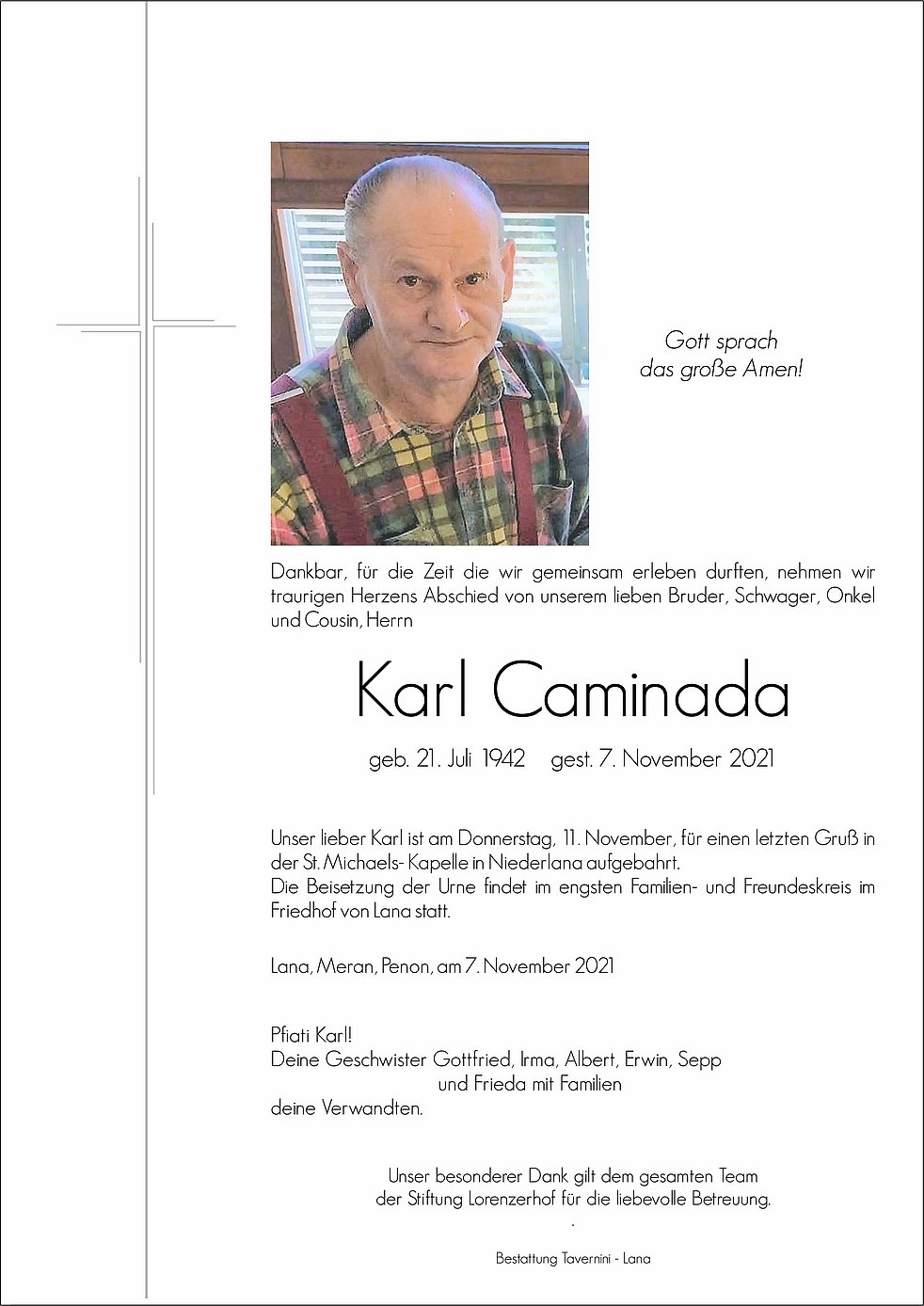 Deinen Geschwistern mein herzliches Beileid