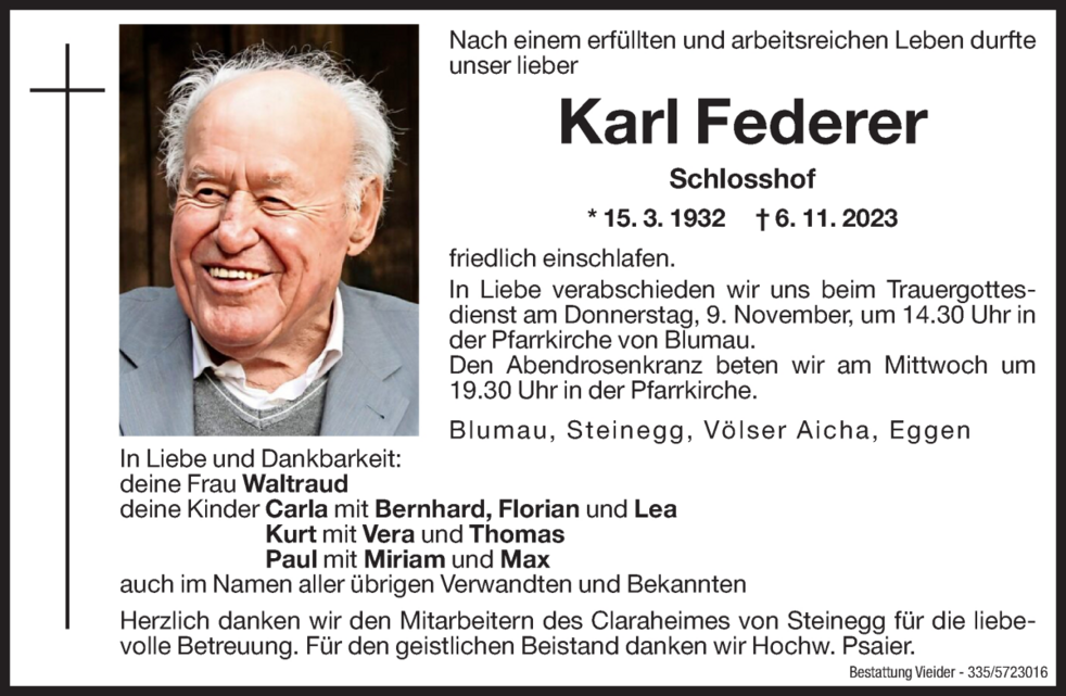 Herzlich danken wir den Mitarbeitern des Claraheimes von Steinegg für die liebevolle Betreuung. Für den geistlichen Beistand danken wir Hochw. Psaier.